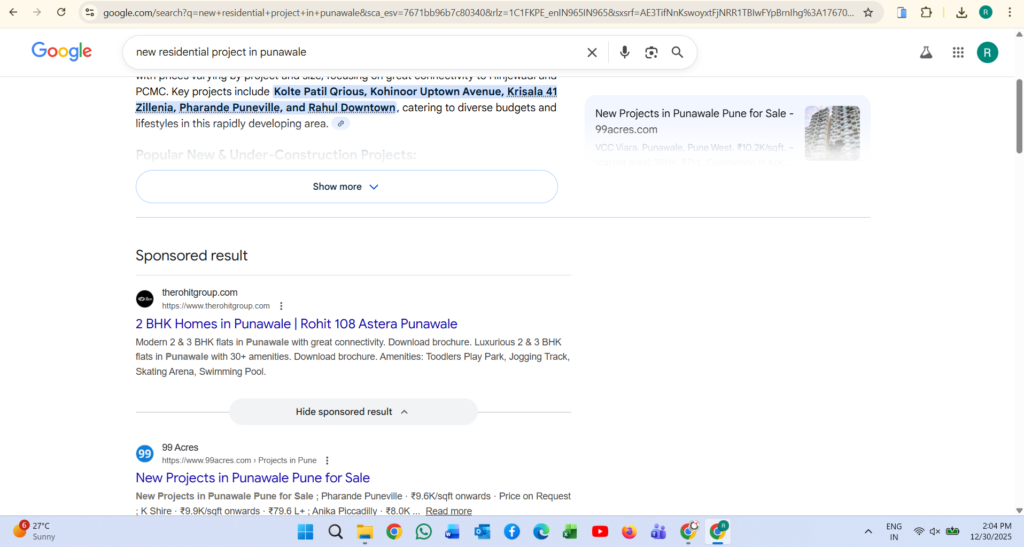 As a Google Ads management agency in Pune, we managed and optimized Rohit Group’s search and performance campaigns to capture users actively searching for residential and commercial real estate projects. Strategic keyword planning, bid optimization, and budget control helped deliver consistent leads and improved ROI.